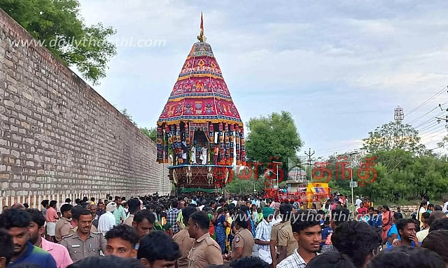 மண்ணச்சநல்லூர் அருகே திருப்பைஞ்சீலியில் நீலிவனேஸ்வரர் கோவில் சித்திரை தேர்த்திருவிழாவையொட்டி நேற்று முன்தினம் மதியம் தேரோட்டம் நடைபெற்றது. மாலை 6 மணிக்கு திடீரென மழை பெய்ததால், தேரை இழுக்க முடியாமல் பக்தர்கள் கலைந்து சென்றனர். இதனால் தேர் நிலைக்கு வராமல் தடைபட்டது. இதைத்தொடர்ந்து நேற்று மதியம் 3.10 மணிக்கு மீண்டும் தேரோட்டம் நடைபெற்றது. அப்போது பக்தர்கள் தேரை வடம் பிடித்து இழுத்தனர். இதைத் தொடர்ந்து தேர் மாலை 5.20 மணிக்கு நிலையை அடைந்தது. தேருக்கு முன்பு பக்தர்கள் தேங்காய் உடைத்தும், தீபம் ஏற்றியும் வழிபட்டனர். மேலும் தேரின் மீது ஏறி சாமி தரிசனம் செய்தனர். இதையொட்டி மண்ணச்சநல்லூர் போலீஸ் இன்ஸ்பெக்டர் ரமேஷ்குமார் தலைமையில் போலீசார் பாதுகாப்பு பணியில் ஈடுபட்டனர். இன்று (வெள்ளிக்கிழமை) காலை 6 மணிக்கு மேல் தேர்க்கால் பார்த்தல் மற்றும் நடராஜர் புறப்பாடு நடைபெறுகிறது. இரவு 7 மணிக்கு கேடயத்தில் சாமி புறப்பாடு நடைபெறுகிறது. நாளை (சனிக்கிழமை) இரவு 7 மணிக்கு முத்துப்பல்லக்கும், 7-ந்தேதி இரவு பஞ்சப்பிரகார புறப்பாடும் நடைபெறுகிறது. 8-ந் தேதி காலை 7 மணிக்கு விடையாற்றி மற்றும் சுவாமி அம்பாளுக்கு அபிஷேக, ஆராதனைகள் நடைபெறுகின்றன.