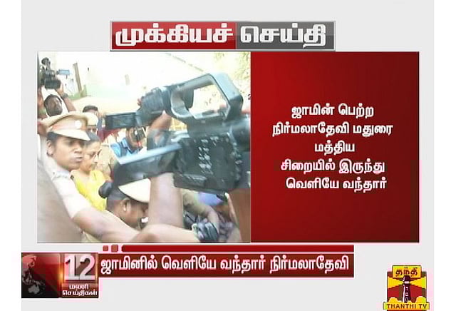 இதையடுத்து நிர்மலா தேவி இன்று ஜாமீனில் விடுதலை செய்யப்பட்டார். சிறையில் இருந்து வரும் நிர்மலா தேவி எங்கு வேண்டுமானாலும் தங்கலாம் எனவும் செய்தியாளர்களை சந்திக்கக் கூடாது எனவும் நிபந்தனை விதிக்கப்பட்டுள்ளது குறிப்பிடத்தக்கது.
