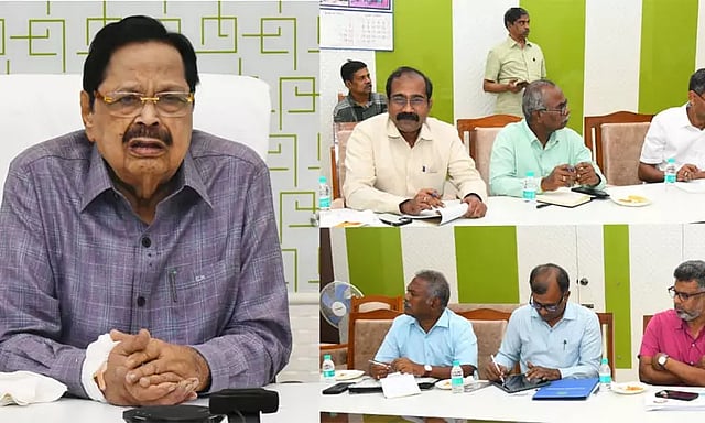 (24.11.2025) நேற்று தலைமைச் செயலகத்தில் நீர்வளத்துறை அமைச்சர் துரைமுருகன் வடகிழக்கு பருவமழையினால் தற்போது நீர்நிலைகளில் உள்ள நீர் இருப்பு நிலவரங்கள், எடுக்கப்பட்டுள்ள முன்னெச்சரிக்கை நடவடிக்கைகள், தற்போது ஏற்பட்டுள்ள பாதிப்பு விவரங்கள் குறித்து அனைத்து மண்டல தலைமைப் பொறியாளர்களுடன் ஆலோசனை நடத்தினார்.
