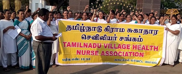 துணை சுகாதார மையங்களில் காலியாக உள்ள நர்சு பணியிடங்களை உடனடியாக நிரப்ப வேண்டும் என்பது உள்ளிட்ட கோரிக்கைகளை வலியுறுத்தி நேற்று நாமக்கல் கலெக்டர் அலுவலகம் முன்பு தமிழ்நாடு கிராம சுகாதார செவிலியர் சங்கம் சார்பில் ஆர்ப்பாட்டம் நடத்தப்பட்டது. இந்த ஆர்ப்பாட்டத்திற்கு சங்கத்தின் மாவட்ட தலைவர் ஜெயக்கொடி தலைமை தாங்கினார். செயலாளர் சாந்தாமணி, பொருளாளர் பூங்கொடி ஆகியோர் முன்னிலை வகித்தனர். அரசு ஊழியர் சங்கத்தின் மாவட்ட செயலாளர் முருகேசன் கோரிக்கைகளை விளக்கி பேசினார்.