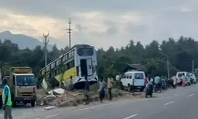 சென்னையில் இருந்து நெல்லை நோக்கி சென்ற தனியார் ஆம்னி பஸ் மீது மற்றொரு ஆம்னி பஸ் மோதியது. இந்த கோர விபத்தில் 3 பயணிகள் பலியாகினர். 15 பேர் படுகாயம் அடைந்தனர். மதுரை கொட்டாம்பட்டி அருகே பள்ளப்பட்டியில் தேசிய நெடுஞ்சாலை ஓரத்தில் நின்றிருந்த ஆம்னி பஸ் மீது பின்னால் வந்த ஆம்னி பஸ் அசுர வேகத்தில் மோதியுள்ளது.