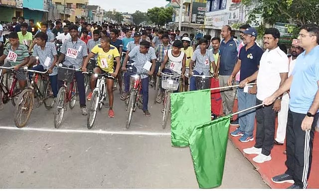 தமிழக முன்னாள் முதல்-அமைச்சர் அண்ணா பிறந்தநாளையொட்டி விளையாட்டுத்துறை சார்பில் விழுப்புரம் மாவட்ட அளவிலான சைக்கிள் போட்டி விழுப்புரம் அருகே கோலியனூரில் நடைபெற்றது. இப்போட்டியை மாவட்ட கலெக்டர் மோகன் கொடியசைத்து தொடங்கி வைத்தார். சைக்கிள் போட்டி கோலியனூர் கூட்டு ரேட்டில் இருந்து தொடங்கி கா.குப்பம் வழியாக சென்று விழுப்புரத்தில் முடிவடைந்தது.