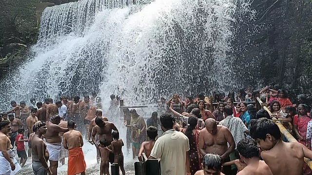 கம்பம் அருகே உள்ள சுருளி அருவி சிறந்த சுற்றுலா தலம், ராமேசுவரத்துக்கு அடுத்தபடியாக புண்ணிய ஸ்தலமாக விளங்குகிறது. இதனால் மாதந்தோறும் அமாவாசையன்று இந்த அருவியில் பொதுமக்கள் புனித நீராடி முன்னோர்களுக்கு தாப்பணம் கொடுப்பது வழக்கம். அதன்படி, புரட்டாசி மாத மகாளய அமாவாசையையொட்டி நேற்று, தர்ப்பணம் செய்வதற்காக சுருளி அருவி பகுதியில் ஏராளமான பொதுமக்கள் குவிந்தனர். அவர்கள் இந்த அருவியில் நீராடி அங்குள்ள சுருளி ஆண்டவர், சுருளி வேலப்பர், விபூதி குகை கோவில், ஆதி அண்ணாமலையார் கோவில் உள்ளிட்ட கோவில்களில் சாமி தரிசனம் செய்தனர்.