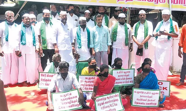 கோவில் குத்தகை விவசாயிகள் மீது நில அபகரிப்பு வழக்குப்பதிவு செய்து விளைநிலங்களை விட்டு விவசாயிகளை வெளியேற்றுவதை கைவிட வேண்டும், அரசு கொள்கை முடிவெடுத்து நீதிமன்ற நடவடிக்கையை முடிவுக்கு கொண்டு வர வேண்டும் உள்ளிட்ட கோரிக்கைகளை வலியுறுத்தி தமிழ்நாடு அனைத்து விவசாயிகள் சங்கங்களின் ஒருங்கிணைப்பு குழு சார்பில், அதன் தலைவர் பி.ஆர்.பாண்டியன் தலைமையில் சென்னை பெசன்ட்நகரில் கடந்த 15-ந்தேதி சத்தியாகிரக போராட்டம் தொடங்கியது. இந்த போராட்டம் 3-வது நாளாக நேற்றும் தொடர்ந்தது. இதில் வாயில் கருப்பு துணி கட்டிக்கொண்டு தமிழக அரசை நோக்கி கோரிக்கைகளை வலியுறுத்தும் விதமாக போராட்டம் நடந்தது. மே 17 இயக்க ஒருங்கிணைப்பாளர் திருமுருகன் காந்தி, விடுதலை தமிழ் புலிகள் கட்சித் தலைவர் குடந்தை அரசன் உள்ளிட்டோரும் பங்கேற்றனர். போராட்டத்தில் நூற்றுக்கணக்கானோர் கலந்துகொண்டனர்.