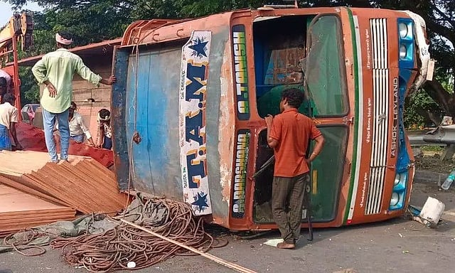 கேரளாவில் இருந்து நேற்று மரபிளைவுட் பொருட்களை ஏற்றுக்கொண்டு லாரி ஒன்று சென்று கொண்டிருந்தது. மயிலம் அடுத்த பாலப்பட்டு பகுதியில் சென்று கொண்டிருந்தபோது, டிரைவரின் கட்டுப்பாட்டை இழந்து சாலையில் நடுவே லாரி கவிழ்ந்து விபத்துக்குள்ளானது. இதுகுறித்த தகவல் அறிந்ததும் சம்பவ இடத்திற்கு விரைந்து வந்த போலீசார் லாரியை அப்புறப்படுத்தி போக்குவரத்தை சீர் செய்தனர்.