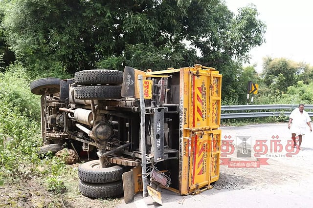 மலைப்பாதையில் கவிழ்ந்த லாரி