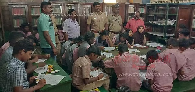 வால்பாறை அரசு ஆண்கள் மேல்நிலைப்பள்ளியில் போலீசார் சார்பில் குட்டி காவலன் என்ற தலைப்பில் விழிப்புணர்வு ஒவிய, கட்டுரை போட்டி நடத்தப்பட்டது.