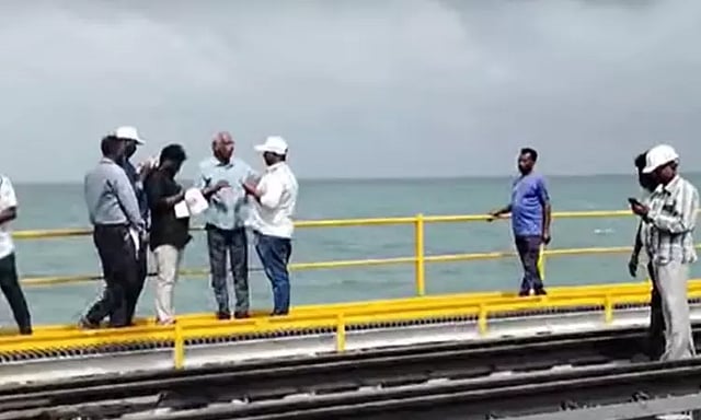 ராமநாதபுரம் மாவட்டம் பாம்பன் கடலின் நடுவே ரூ.545 கோடியில் சுமார் 2 கிலோ மீட்டர் நீளத்திற்கு புதிதாக ரெயில் பாலம் கட்டி முடிக்கப்பட்டு உள்ளது. இந்த பாலத்தின் மையப்பகுதியில் கப்பல்கள் கடந்து செல்லும்போது திறந்து மூடும் வகையில் 77 மீட்டர் நீளமும், 650 டன் எடையும் கொண்ட செங்குத்து வடிவிலான தூக்குப்பாலமும் அமைக்கப்பட்டு உள்ளது. புதிய ரெயில் பால பணிகள் முடிவடைந்துவிட்டன.