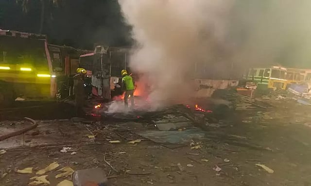 தீ விபத்து குறித்து உடனடியாக தீயணைப்புத் துறையினருக்கு தகவல் தெரிவிக்கப்பட்டது. தகவலின் பேரில் சம்பவ இடத்திற்கு விரைந்து வந்த தீயணைப்புத் துறையினர் தீயை அணைத்தனர். இதில் 4 பேருந்துகள் தீயில் எரிந்து சேதமடைந்தன.