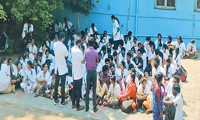 . செங்கல்பட்டு அரசு மருத்துவ கல்லூரியில் 3-ம் ஆண்டு படித்து வரும் மாணவி ஒருவருக்கு கல்லூரியின் பேராசிரியர் ஒருவர் பாலியல் தொந்தரவு அளித்ததாக கூறப்படுகிறது. இது குறித்து பாதிக்கப்பட்ட மாணவி ஆஸ்பத்திரி முதல்வரிடம் புகார் அளித்துள்ளார். அதில் எந்த நடவடிக்கையும் எடுக்காததால் திடீரென 50-க்கும் மேற்பட்ட பயிற்சி டாக்டர்கள் ஆஸ்பத்திரி வளாகத்தில் அமர்ந்து தர்ணா போராட்டத்தில் ஈடுபட்டனர்.