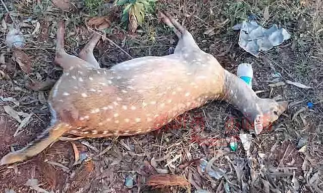 புதுக்கோட்டை, ஆலங்குடி, வம்பன், திருவரங்குளம் ஆகிய பகுதிகளில் புள்ளிமான்கள் இரை தேடியும், தண்ணீர் குடிப்பதற்கும் தைல மரக்காட்டில் சுற்றி வருகிறது. இந்தநிலையில், ஆலங்குடி அருகே வம்பனில் சாலையை புள்ளிமான் ஒன்று கடக்க முயன்றது. அப்போது அந்த வழியாக சன்ற அடையாளம் தெரியாத வாகனம் மோதி புள்ளிமான் பரிதாபமாக இறந்தது. இதுகுறித்து தகவல் அறிந்த ஆலங்குடி போலீஸ் துணை சூப்பிரண்டு தீபக் ரஜினி, சப்-இன்ஸ்பெக்டர் கதிரேசன் ஆகியோர் வனத்துறையினருக்கு தகவல் தெரிவித்தனர். இதையடுத்து அங்கு வந்த வனத்துறையினர் புள்ளிமானை மீட்டு புதுக்கோட்டை மச்சுவாடிக்கு உடற்கூறு ஆய்வுக்கு அனுப்பி வைத்தனர்.