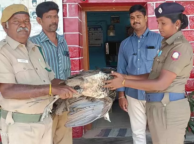 ஆனால் அந்த மயில் இறந்து இருந்தது. மேலும் அது 2 வயதான ஆண் மயில் ஆகும். திண்டுக்கல் அருகே காட்டுப் பகுதியில் ரெயில் என்ஜின் வந்தபோது, மயில் அடிபட்டு இறந்து இருக்கலாம் என்று கூறப்படுகிறது. இதையடுத்து வனத்துறையினரை வரவழைத்து, மயிலின் உடலை போலீசார் ஒப்படைத்தனர்.