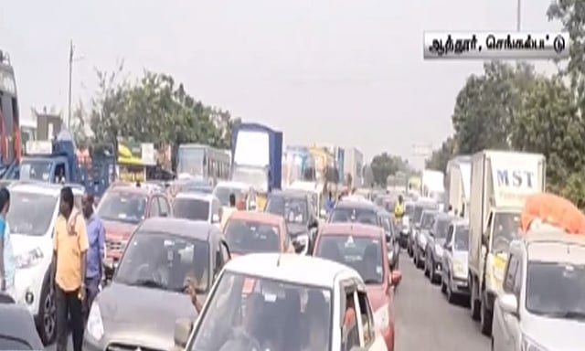 குறிப்பாக, செங்கல்பட்டு மாவட்டம் மதுராந்தகம் அடுத்த ஆத்தூர் சுங்கச்சாவடியில் கடும் போக்குவரத்து நெரிசல் ஏற்பட்டுள்ளது. சுமார் 5 கிலோமீட்டருக்கு வாகனங்கள் அணிவகுத்து நிற்பதால், வாகன ஓட்டிகள் அவதியடைந்துள்ளனர்.