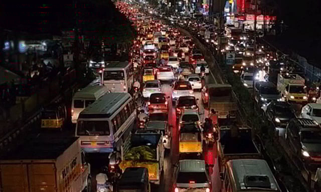 குறிப்பாக பெருங்களத்தூரில் ஆயிரக்கணக்கான வாகனங்கள் கடந்து வருவதால், அங்கு கடும் போக்குவரத்து நெரிசல் ஏற்பட்டுள்ளது. இதனால் வாகனங்கள் அணிவகுத்து நிற்கின்றன.