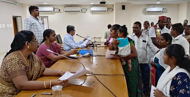ராணிப்பேட்டை மாவட்ட கலெக்டர் அலுவலக கூட்ட அரங்கில் மக்கள் குறைதீர்வு நாள் கூட்டம் நடந்தது. கலெக்டர் வளர்மதி தலைமை தாங்கி, பொதுமக்கள் மற்றும் மாற்றுத்திறனாளிகளிடம் இருந்து கோரிக்கை மனுக்களை பெற்றுக்கொண்டு குறைகளை கேட்டறிந்தார்.