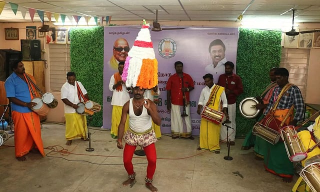 விழுப்புரம் மாவட்ட அரசு இசைப்பள்ளியில் தமிழ்நாடு அரசின் தஞ்சாவூர் மண்டல கலை பண்பாட்டுத்துறை சார்பில் கலைஞர் நூற்றாண்டு விழாவையொட்டி கலை நிகழ்ச்சிகள் நேற்று நடைபெற்றன. நிகழ்ச்சிக்கு கலை பண்பாட்டு மைய உதவி இயக்குனர் நீலமேகன் தலைமை தாங்கினார். டாக்டர் லட்சுமணன் எம்.எல்.ஏ. கலந்துகொண்டு, கலை நிகழ்ச்சிகளை தொடங்கி வைத்து பார்வையிட்டார். விழுப்புரம் நகரமன்ற தலைவர் தமிழ்செல்வி, தமிழ்நாடு கலைத்தாய் அனைத்து நாட்டுப்புற கலைஞர்கள் நலச்சங்க மாநில தலைவர் சத்யராஜ் ஆகியோர் முன்னிலை வகித்தனர். இதில் ஜெகதீசன் குழுவினரின் வீரபத்திரசாமி வம்சாவழி உடுக்கை, பம்பை, சிலம்பு கலைச்சங்கம நிகழ்ச்சிகளும், பெரியசாமி குழுவினரின் முத்துமாரியம்மன் தெருக்கூத்து நாடகமும், முருகன் குழுவினரின் மதுரைவீரன் கிராமிய கலைக்குழு தப்பாட்டமும் நடந்தது. இதில் பங்கேற்ற அனைவருக்கும் பாராட்டு சான்றிதழ் வழங்கப்பட்டது. நிகழ்ச்சி முடிவில் மாவட்ட அரசு இசைப்பள்ளி தலைமை ஆசிரியர் ஈஸ்வரன் பட்டத்திரி நன்றி கூறினார்.