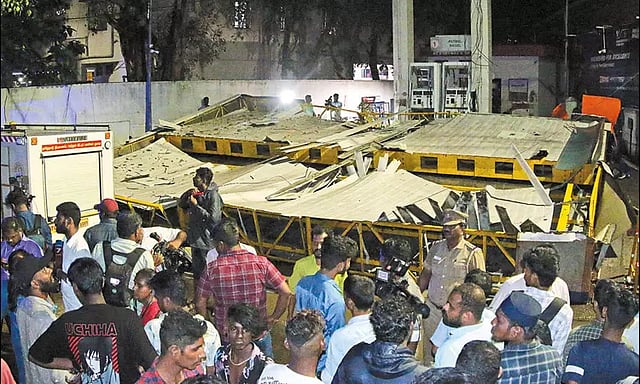 மேலும் பெட்ரோல் பங்க் என்பதால் கேஸ் வெல்டிங் கருவி மூலம் மேற்கூரையை வெட்டி எடுக்க முடியாத நிலை ஏற்பட்டுள்ளதாகவும், இந்தியன் ஆயில் கார்ப்பரேஷன் அதிகாரிகள் வரவழைக்கப்பட்டு அவர்களின் ஒப்புதலுடன் தான் மேற்கூரையை முழுமையாக அகற்றும் பணி நடைபெறும் என்று தெரிவித்துள்ளனர்.