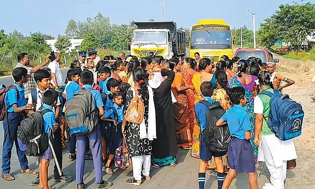 மேலும், பள்ளி மாணவர்களுக்கு அரசு சார்பில் இலவச பஸ் பயண அட்டை வழங்கியும், தனியார் பஸ்களில் மாணவர்கள் பணம் கொடுத்து பயணம் செய்யும் நிலை உள்ளதாகவும், இதுகுறித்து பலமுறை புகார் அளித்தும் எந்த நடவடிக்கையும் எடுக்கவில்லை என்று குற்றம் சாட்டுகின்றனர். இதனை கண்டித்து செங்கல்பட்டு - காஞ்சீபுரம் சாலையில் மாணவ-மாணவிகள், பொதுமக்கள் மறியல் போராட்டத்தில் ஈடுபட்டனர்.