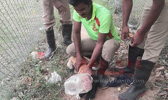 திருவாரூர் மாவட்டம் மன்னார்குடி பூக்கொல்லை பகுதியில் சுற்றித்திரிந்த தெரு நாய்க்குட்டி ஒன்று உணவு தேடி அலைந்த போது சாலை ஓரம் கிடந்த பிளாஸ்டிக் பாட்டிலில் இருந்த உணவை சாப்பிட முயன்றது. அப்போது நாய் குட்டியின் தலையில் பிளாஸ்டிக் பாட்டில் மாட்டிக்கொண்டது. பிளாஸ்டிக் பாட்டிலில் இருந்து தலையை வெளியே எடுக்க முடியாமல் நாய்க்குட்டி அங்கும் இங்கும் சுற்றித்திரிந்தது. இதனை கண்ட அப்பகுதி மக்கள் நேற்று மன்னார்குடி தீயணைப்பு நிலையத்திற்கு தகவல் கொடுத்தனர் தகவலின் பெயரில் சம்பவ இடத்திற்கு வந்த தீயணைப்பு வீரர்கள் நாய்க்குட்டியை பிடித்து அதன் தலையில் மாட்டி இருந்த பிளாஸ்டிக் பாட்டிலை லாவகமாக வெளியே எடுத்து நாய்க்குட்டியை மீட்டனர். தீயணைப்பு படையினரின் இந்த மனிதநேய செயலை அப்பகுதி மக்கள் தீயணைப்பு வீரர்களை பாராட்டினர்.