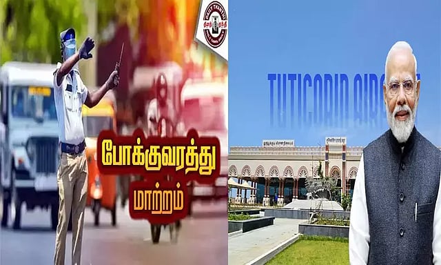 தூத்துக்குடி விமான நிலையம் புதுப்பிக்கப்பட்ட புதிய முனையம் திறப்பு விழாவிற்கு நாளை (26.7.2025, சனிக்கிழமை) பாரத பிரதமர் நரேந்திர மோடி வருகையை முன்னிட்டு தூத்துக்குடி மாவட்ட காவல்துறை சார்பாக மேற்கொள்ளப்படும் போக்குவரத்து ஏற்பாடுகள் மற்றும் பாதுகாப்பு சம்மந்தமாக பின்வரும் அறிவிப்புகள் வெளியிடப்பட்டுள்ளது.