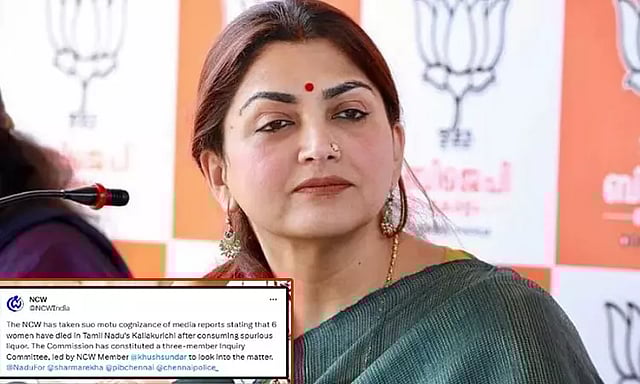 இந்நிலையில், கள்ளக்குறிச்சி விஷச்சாராய சம்பவத்தில் 6 பெண்கள் உயிரிழந்த விவகாரம் குறித்து ஊடகங்களில் வெளியான செய்தி அடிப்படையில் தேசிய மகளிர் ஆணையம் தாமாக முன்வந்து விசாரணை நடத்த உள்ளது. இதற்காக தேசிய மகளிர் ஆணைய உறுப்பினர் குஷ்பூ தலைமையில் 3 பேர் கொண்ட விசாரணை குழு அமைக்கப்பட்டுள்ளது.