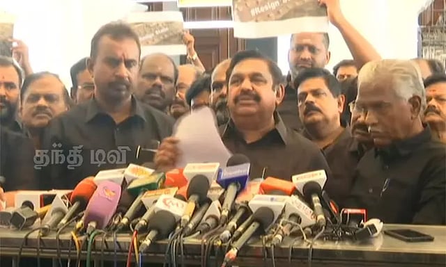 தமிழக சட்டப்பேரவை கூடியதும் கள்ளக்குறிச்சி விவகாரத்தை விவாதிக்கக் கோரி அதிமுக எம்.எல்.ஏக்கள் அமளியில் ஈடுபட்டனர். கேள்வி நேரத்தில் தொடர்ந்து அமளியில் ஈடுபட்ட நிலையில், சபாநாயகர் அனுமதி அளிக்காததால் பேரவையில் இருந்து அதிமுக எம்.எல்.ஏக்கள் வெளிநடப்பு செய்தனர். இதையடுத்து சட்டப்பேரவை வளாகத்தில் சட்டமன்ற எதிர்க்கட்சி தலைவர் எடப்பாடி பழனிசாமி செய்தியாளர்களுக்கு பேட்டி அளித்தார். அப்போது அவர் கூறியதாவது:--