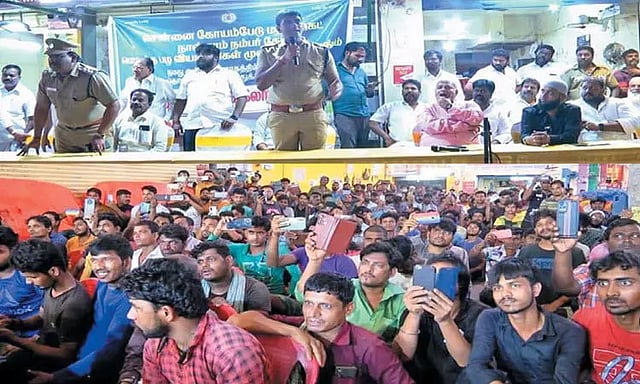 இந்தநிலையில் சென்னை கோயம்பேடு மார்கெட்டில் ஆயிரத்துக்கும் அதிகமான வடமாநில தொழிலாளர்கள் பணிபுரிந்து வருவதால் அவர்களின் பாதுகாப்பை உறுதி செய்வதற்கும், அவர்கள் பயப்படாமல் இருப்பதற்கும் விழிப்புணர்வு ஏற்படுத்தும் வகையில் கோயம்பேடு மார்க்கெட்டில் உள்ள வடமாநில தொழிலாளர்கள் மற்றும் அவர்கள் பணிபுரியும் கடை உரிமையாளர்கள், வியாபாரிகளுடன் போலீஸ் அதிகாரிகள் ஆலோசனை கூட்டம் நடத்தினார்கள்.