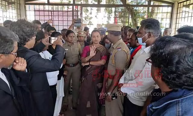 இதையொட்டி அங்கு பொறுப்பு இன்ஸ்பெக்டர்கள் வேல்முருகன், கோமதி, சரவணகுமார் தலைமையில் ஏராளமான போலீசார் பாதுகாப்பு பணியில் ஈடுபட்டனர். இருப்பினும் அரசியல் கட்சியினர் மற்றும் கிராம மக்கள் தாசில்தார் அலுவலகத்துக்குள் செல்ல முயன்றனர். அவர்களை போலீசார் தடுத்து நிறுத்தினர். எனினும் சமாதானம் அடையாமல் நுழைவு வாயில் முன்பு அமர்ந்து தர்ணா போராட்டத்தில் ஈடுபட்டனர். அவர்களுக்கு ஆதரவாக 10-க்கும் மேற்பட்ட வக்கீல்களும் களமிறங்கினர்.