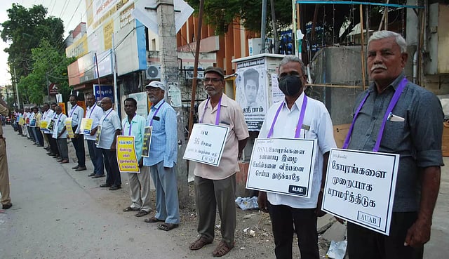 நாடு முழுவதும் பி.எஸ்.என்.எல். நிறுவனத்தில் 4-ஜி சேவையை வழங்கிட வேண்டும். அதற்கு தடையாக உள்ள அனைத்து விதிமுறைகளையும் மாற்றியமைக்க வேண்டும். தேசிய பணமாக்கல் திட்டம் எனும் பெயரில் பி.எஸ்.என்.எல். உள்ளிட்ட அனைத்து பொதுத்துறை நிறுவனங்களையும் தனியாருக்கு விற்பனை செய்யும் போக்கை மத்திய அரசு கைவிட வேண்டும் என்பது உள்பட பல்வேறு கோரிக்கைகளை வலியுறுத்தி இந்த போராட்டம் நடந்தது. இதில் பி.எஸ்.என்.எல். ஊழியர்கள் பலர் கலந்து கொண்டார்கள்.