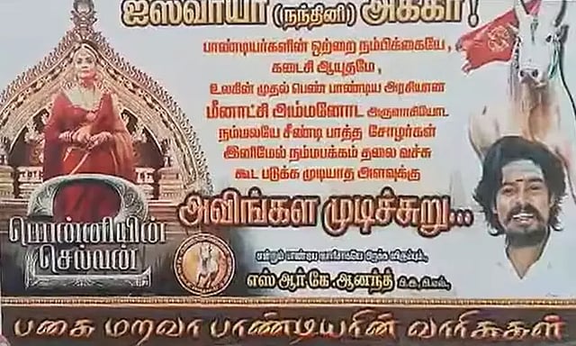 இந்த நிலையில் பகை மாறா பாண்டியரின் வாரிசுகள் என்ற பெயரில் ஒட்டப்பட்டுள்ள போஸ்டரில் ஐஸ்வர்யா (நந்தினி) அக்கா! பாண்டியர்களின் ஒற்றை நம்பிக்கையே, கடைசி ஆயுதமே என போஸ்டர் ஒட்டப்பட்டுள்ளது.