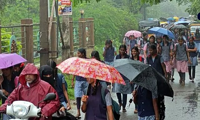 அதன்படி, தமிழகத்தின் பல்வேறு மாவட்டங்களில் இன்று காலை முதல் மிதமான மழை முதல் கனமழை பெய்து வருகிறது. இதன் காரணமாக சென்னை, விழுப்புரம், தஞ்சை, மயிலாடுதுறை, புதுக்கோட்டை, கடலூர், ராமநாதபுரம், திண்டுக்கல், காஞ்சிபுரம், திருவாரூர் செங்கல்பட்டு ராணிப்பேட்டை, கரூர், திருவண்ணாமலை, வேலூர், தூத்துக்குடி, திருவள்ளூர், திருப்பத்தூர் ஆகிய மாவட்டங்களில் உள்ள பள்ளிகளுக்கு விடுமுறை அளிக்கப்பட்டுள்ளது. நெல்லையில் 1 முதல் 5-ம் வகுப்புகளுக்கு மட்டும் விடுமுறை அறிவிக்கப்பட்டுள்ளது.
