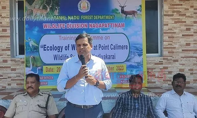 திருச்சி மண்டல தலைமை வனப்பாதுகாவலர் சதீஷ் ஆலோசனையின் பேரில் திருச்சி மண்டல வனவர்கள், வனக்காப்பாளர்கள், வனக்காவலர்கள், வேட்டை தடுப்பு காவலர்கள் மற்றும் மயிலாடுதுறை ஏ.வி.சி. கல்லூரி மாணவர்கள் உள்ளிட்ட 2 ஆயிரம் பேருக்கு கோடியக்கரை சரணாலய பகுதியில் வனவிலங்குகள், பறவைகள் கணக்கெடுக்கும் முறைகள் குறித்து பயிற்சி நேற்று தொடங்கியது. நாள் ஒன்றுக்கு 40 பேர் வீதம் 5 நாட்கள் பயிற்சி நடைபெறுகிறது. பயிற்சியை நாகப்பட்டினம் வன உயிரினக்காப்பாளர் அபிஷேக் தோமர் தொடங்கி வைத்தார். இதில் கோடியக்கரை வனச்சரக அலுவலர் அயூப்கான், மயிலாடுதுறை ஏ.வி.சி. கல்லூரி உதவி பேராசிரியர்கள் பாண்டியன், பாஸ்கர் ஆகியோர் வனவிலங்குகள் மற்றும் பறவைகள் கணக்கெடுப்பது எப்படி என்பது குறித்து பயிற்சி அளித்தனர்.
