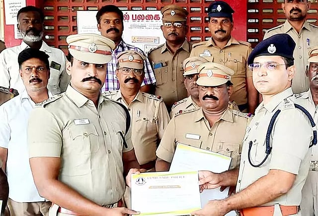 இந்த வழக்கில் உரிய விசாரணை நடத்தி கொள்ளையர்களை பிடித்த துணை போலீஸ் சூப்பிரண்டு சுரேஷ், போலீஸ் இன்ஸ்பெக்டர் வெங்கடாஜலம், சப்-இன்ஸ்பெக்டர்கள் பூபதி, மனோகரன், முருகன் மற்றும் போலீசாருக்கு போலீஸ் சூப்பிரண்டு சாய்சரண் தேஜஸ்வி பாராட்டி சான்றிதழ்களை வழங்கினார்.