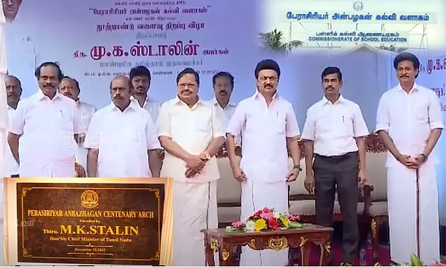 அதன்பின், நுங்கம்பாக்கத்தில் உள்ள பள்ளிக்கல்வித்துறை அலுவலக வளாகத்தில் அன்பழகனின் நூற்றாண்டு வளைவு மற்றம் அன்பழகன் கல்வி வளாக கல்வெட்டை முதல்-அமைச்சர் மு.க.ஸ்டாலின் திறந்து வைத்தார்.