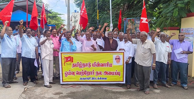 தர்மபுரியில் மின்வாரிய ஓய்வு பெற்றோர் நல அமைப்பினர் ஆர்ப்பாட்டத்தில் ஈடுபட்டனர்.