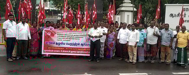 மாவட்ட தலைவர் கண்ணன் தலைமை தாங்கினார். சி.ஐ.டி.யு. மாவட்ட செயலாளர் வேலுசாமி. சங்கத்தின் மாவட்ட பொருளாளர் சிவராஜ். சி.ஐ.டி.யு மாவட்ட உதவி செயலாளர் சுரேஷ் ஆகியோர் கோரிக்கைகளை விளக்கி பேசினர்.. தமிழ்நாடு அரசு ஊழியர் சங்க மாவட்ட செயலாளர் முருகேசன் வாழ்த்தி பேசினார்.