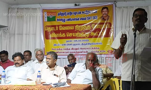 தமிழ்நாடு மாநில தொடக்க கூட்டுறவு வங்கி அனைத்து பணியாளர்கள் சங்கத்தின், தொடர் வேலை நிறுத்த போராட்ட விளக்க மாநில செயற்குழு கூட்டம், திருச்சியில் நேற்று நடைபெற்றது. மாநிலத் தலைவர் மணிவண்ணன் தலைமை தாங்கினார். கவுரவ பொதுச்செயலாளர் குப்புசாமி, தமிழ்நாடு மாநில தொடக்க கூட்டுறவு வங்கி அனைத்து பணியாளர் ஓய்வு பெற்றோர் சங்க மாநில தலைவர் செல்லமுத்து ஆகியோர் முன்னிலை வகித்தனர். மாநில பொதுச் செயலாளர் காமராஜ்பாண்டியன், மாநில கவுரவ பொதுச்செயலாளர் குப்புராஜ் ஆகியோர் சிறப்பு அழைப்பாளர்களாக கலந்து கொண்டு வேலை நிறுத்த பேராட்டம் குறித்து பேசினர். இதில் மாநில பொருளாளர் ஏ.சேகர், துணைத் தலைவர் நடராஜன், இணைச்செயலாளர் ஆர்.ஜி.சேகர், செந்தில்குமார் உள்பட மாநிலம் முழுவதிலும் இருந்து ஏராளமானோர் கலந்து கொண்டனர். முன்னதாக திருச்சி மாவட்ட செயலாளர் காமராஜ் வரவேற்றார். முடிவில் திருச்சி மாவட்ட தலைவர் ஜெகநாதன் நன்றி கூறினார்.
