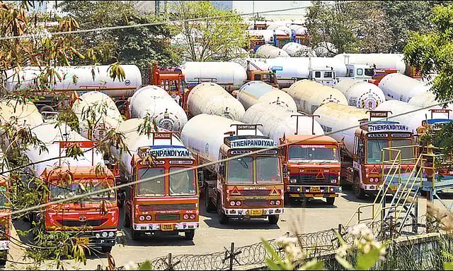 இந்த விதிமுறைகளால் டேங்கர் லாரிகளை இயக்க முடியாத நிலைக்கு தள்ளப்பட்டுள்ளதாக கூறி லாரி உரிமையாளர்கள் சங்கத்தினர் நேற்று காலை முதல் கால வரையற்ற போராட்டத்தை தொடங்கினர். இதனால் எண்ணை நிறுவன கிடங்குகளில் இருந்து பாட்லிங் பிளாண்டுகளுக்கு கியாஸ் ஏற்றி செல்லப்படும் பணிகள் முற்றிலும் பாதிக்கப்பட்டன. இதனால் கியாஸ் தட்டுப்பாடு ஏற்படும் அபாயம் ஏற்பட்டுள்ளது.