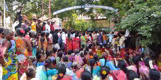 இதனால் ஆத்திரம் அடைந்த கிராம மக்கள் தாலுகா அலுவலகம் முன்பு தர்ணா போராட்டத்தில் ஈடுபட்டனர். அங்கு வந்த வட்டாட்சியர் உரிய நடவடிக்கை எடுப்பதாக கூறி சமாதானம் செய்தார். அதைத் தொடர்ந்து தர்ணாவில் ஈடுபட்ட மக்கள் போராட்டத்தை கைவிட்டு அங்கிருந்து கலைந்து சென்றனர்.