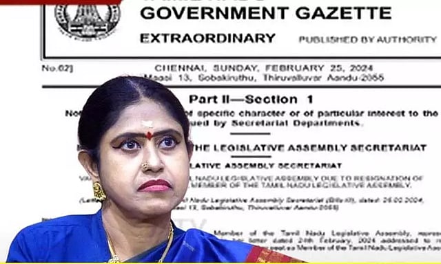 இந்த நிலையில், விளவங்கோடு சட்டமன்ற தொகுதி காலியாக உள்ளதாக தமிழக அரசின் அரசிதழில் அறிவிக்கப்பட்டுள்ளது. ஜனவரி 24-ம் தேதி முதல் தொகுதி காலியாக உள்ளதாக தமிழ்நாடு அரசின் அரசிதழில் தெரிவிக்கப்பட்டுள்ளது.