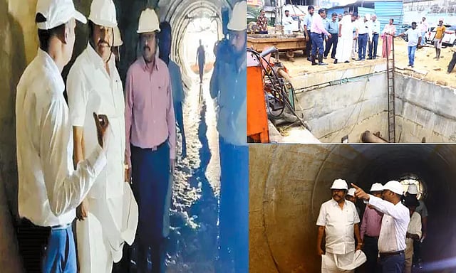இந்த நிலையில் பூந்தமல்லி புறவழி சாலையில் 20 அடி ஆழத்தில் நவீன தொழில்நுட்பத்துடன் நடைபெற்று வரும் குழாய் பதிக்கும் பணியை நகராட்சி நிர்வாகத்துறை அமைச்சர் கே.என்.நேரு நேற்று நேரில் ஆய்வு செய்தார். கிரேன் வழியாக உள்ளே இந்த பணியை பார்வையிட்டார்.
