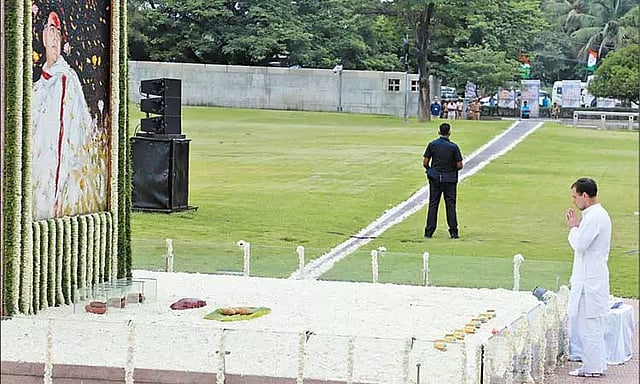 ராஜீவ்காந்தி நினைவிடத்தில் ராகுல்காந்தி மிகுந்த சோகத்துடனே காணப்பட்டார். தன் தந்தையின் நினைவிடத்தை அமைதியாக பார்த்து கொண்டிருந்தார்.