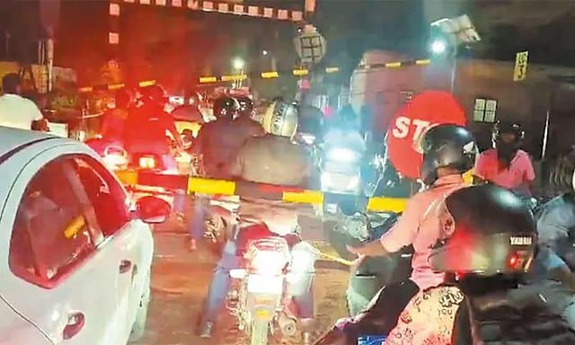 மேலும் அந்த நேரத்தில் ரெயில் வந்து இருந்தால் வாகன ஓட்டிகள் நிலை பரிதாபகரமாக இருந்து இருக்கும் என்கின்றனர். இது பற்றிய தகவல் அறிந்ததும் ரெயில்வே பாதுகாப்பு பணியாளர்கள் உடனே அங்கு விரைந்து வந்து அந்த வழியாக செல்ல முடியாமல் தவித்தவாகனங்களை பாதுகாப்பாக வெளியேற்றினர். இந்த சம்பவம் தொடர்பாக ரெயில்வே துறை அதிகாரிகள் விசாரணை மேற்கொண்டு வருகின்றனர்.
