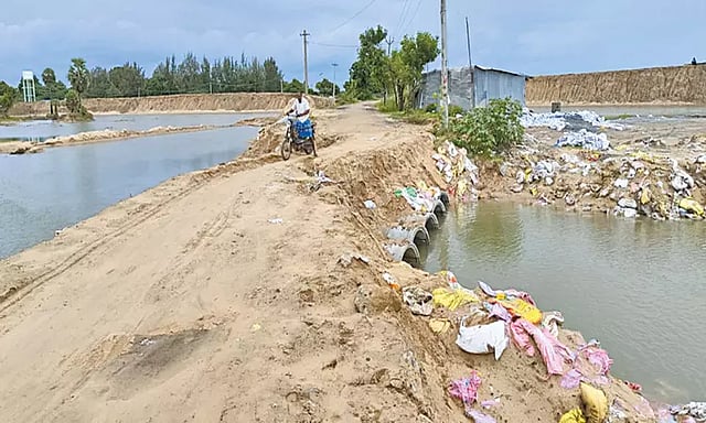 திருவள்ளூர் மாவட்டம் ஆரணி ஆற்றின் குறுக்கே ஆண்டார்மடம் என்ற இடத்தின் வழியாக காட்டூர் கடப்பாக்கம் ஆண்டார்மடம் சாலை பழவேற்காடு நெடுஞ்சாலையில் இணைகிறது. இந்த சாலை கடந்த ஆண்டு பெய்த மழை வெள்ளத்தின் போது ஆற்றில் அடித்து செல்லப்பட்டது. சீரமைப்பு பணிக்காக சாலையில் ராட்சத குழாய்களை ஆற்றில் அமைத்து மணலால் சாலையாக உருவாக்கும் செய்தனர்.
