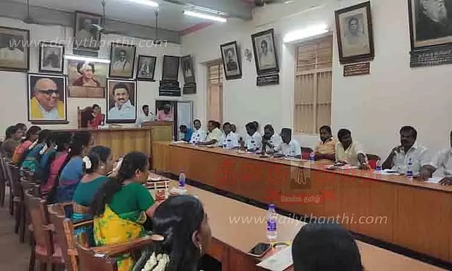 ராஜபாளையம் நகராட்சியின் அவசர கூட்டம் தலைவர் பவித்ரா ஷியாம் தலைமையில் நடைபெற்றது. கூட்டத்தில் துணைத்தலைவர் கல்பனா குழந்தைவேல், அதிகாரிகள், கவுன்சிலர்கள் கலந்து கொண்டனர். இதில் செலவினங்கள், மலையடிப்பட்டி 60 அடி சாலையில் பாலம் கட்டுமானங்கள் ஏற்பது குறித்து மொத்தம் 61 தீர்மானங்கள் நிறைவேற்றப்பட்டது. பின்னர் பேசிய 31-வது வார்டு கவுன்சிலர் ராதா, தன்னுடைய பகுதியில் நடந்து வரும் சாலை திட்ட பணிகள் முன்அறிவிப்பு இல்லாமல் மக்கள் கருத்து கேட்காமலும் நடந்து வருவதால் அப்பகுதி மக்கள் பாதிப்புக்கு உள்ளாகி இருக்கின்றனர். எனவே சாலை பணிகளை கை விட வேண்டும் என கோரிக்கை விடுத்தார். இதற்கு பதிலளித்த நகராட்சி அதிகாரிகள் சாலை திட்ட பணிகள் முறையாக நகராட்சி கூட்டத்தில் தீர்மானம் இயற்றப்பட்டு செயல்படுத்தப்பட்டு வருகிறது. அப்பகுதி மக்களுக்கு பாதிப்பு இன்றி செயல்படுத்தி வருவதால், பணிகளை கை விட முடியாது என அதிகாரிகள் பதிலளித்தனர்.