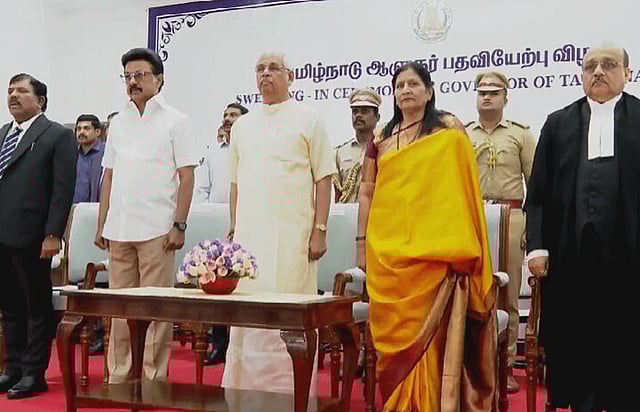 இந்த நிலையில், தமிழ்நாட்டின் பொறுப்பு கவர்னராக ராஜேந்திர விஸ்வநாத் அர்லேகர் இன்று பதவி ஏற்றுக்கொண்டார். அவருக்கு சென்னை ஐகோர்ட்டின் தலைமை நீதிபதி பதவிப்பிரமாணம் செய்து வைத்தார். முதல்-அமைச்சர் மு.க.ஸ்டாலின் முன்னிலையில் நடைபெற்ற இந்த பதவியேற்பு விழாவில் அமைச்சர்கள், எம்.எல்.ஏ.க்கள் உள்ளிட்டோர் கலந்துகொண்டனர்.
