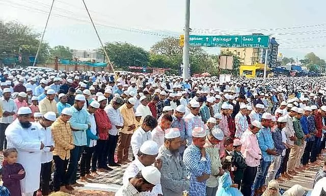 இதில் தொழில் அதிபர்கள் பட்டேல் முகமது யூசுப், அமானுல்லா, நிசார் அகமது, டாக்டர் அன்வருல்லா, வானிடெக் மேலாளர் அப்துல்லா உள்ளிட்ட ஆயிரக்கணக்கானோர் கலந்துகொண்டனர். தொழுகை முடிந்ததும் ஒருவரை ஒருவர் கட்டித்தழுவி வாழ்த்துகளை தெரிவித்துக் கொண்டனர்.