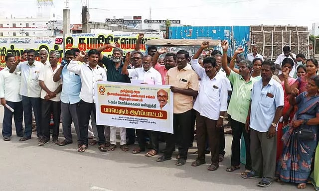 விழுப்புரம் மாவட்ட கலெக்டர் அலுவலம் முன்பு பல்வேறு கோரிக்கைகளை வலியுறுத்தி தமிழ்நாடு ரேஷன் கடை பணியாளர் சங்கத்தினர் ஆர்ப்பாட்டம் நடத்தினர். இதற்கு மாவட்ட தலைவர் கோபிநாத், மாவட்ட பொருளாளர் ரஷீத், தலைமை தாங்கினார். மாவட்ட துணை தலைவர்கள் பழனிவேல், தட்சிணாமூர்த்தி, ஜெகதீசன் முன்னிலை வகித்தனர். மாவட்ட செயலாளர் சம்பத்து சிறப்புரையாற்றினார். ஆர்ப்பாட்டத்தில் தமிழ்நாடு அரசு ரேஷன் கடை பணியாளர்களுக்கு பதவி உயர்வு வழங்க வேண்டும், 20 கி.மீ. தூரத்தில் இருந்து பணிபுரியும் பணியாளர்களுக்கு அவர்கள் வசிக்கும் இடத்திற்கு பணிமாறுதல் செய்ய வேண்டும், மாவட்டம் விட்டு, மாவட்டம் பணியாற்றும் பணியாளர்களுக்கு அவர்களின் சொந்த மாவட்டத்திற்கு பணிமாறுதல் அளிக்க வேண்டும், மாவட்டம் முழுவதும் காலியாக உள்ள பணியிடங்களை உடனே நிரப்ப வேண்டும் என்பன உள்ளிட்ட பல்வேறு கோரிக்கைகளை வலியுறுத்தி ஆர்ப்பாட்டம் நடைபெற்றது. இதில் மாவட்ட இணை செயலாளர் குணசேகரன், கதிர்வேல், பன்னீஸ்வரன் உள்பட பலர் கலந்து கொண்டனர்.