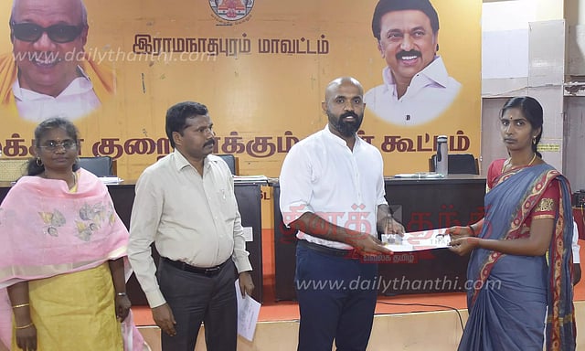 ராமநாதபுரம் கலெக்டர் அலுவலகத்தில் கலெக்டர் ஜானிடாம் வர்கீஸ் தலைமையில் மக்கள் குறைதீர்க்கும் கூட்டம் நடைபெற்றது. இதில் மாவட்டத்தின் பல்வேறு பகுதிகளை சேர்ந்த ஏராளமான பொதுமக்கள் கலந்து கொண்டு தங்களது குறைகள் கோரிக்கைகள் குறித்து மனு கொடுத்தனர். இவ்வாறு வரப்பெற்ற 325 மனுக்களின் மீது உரிய நடவடிக்கை எடுக்குமாறு சம்பந்தப்பட்ட துறை அலுவலர்களுக்கு கலெக்டர் உத்தரவிட்டார். இந்த கூட்டத்தில் வருவாய்த்துறையின் மூலம் முதல்-அமைச்சரின் பொது நிவாரண நிதியின் கீழ், மின்சாரம் தாக்கி உயிரிழந்தவரின் குடும்பத்திற்கு ரூ.50 ஆயிரம் நிவாரணத் தொகைக்கான காசோலையை கலெக்டர் வழங்கினார். கூட்டத்தில் மாவட்ட வருவாய் அலுவலர் ராஜசேகரன், துணை கலெக்டர் மாரிச்செல்வி மற்றும் அரசு அலுவலர்கள் கலந்து கொண்டனர்.