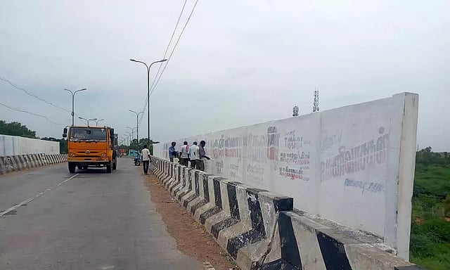 பெண்ணாடம் அருகே உள்ள பெ.பொன்னேரியில் உள்ள ரெயில்வே மேம்பாலத்தின் ஒருபுறம் மீது விடுதலை சிறுத்தைகள் கட்சியின் சார்பிலும், மறுபுறம் அ.தி.மு.க. சார்பிலும் சுவர் விளம்பரங்களும் எழுதப்பட்டு இருந்தன. இது குறித்து பெண்ணாடம் போலீஸ் நிலையம் மற்றும் திட்டக்குடி நெடுஞ்சாலைத்துறைக்கு பொதுமக்களிடம் இருந்து புகார்கள் வந்தன. இதை அடுத்து நெடுஞ்சாலைத்துறையினர் நேற்று மேம்பாலத்தின் மீது எழுதப்பட்டிருந்த கட்சி விளம்பரங்களை வெள்ளை அடித்து அழிதது சுத்தம் செய்தனர்.
